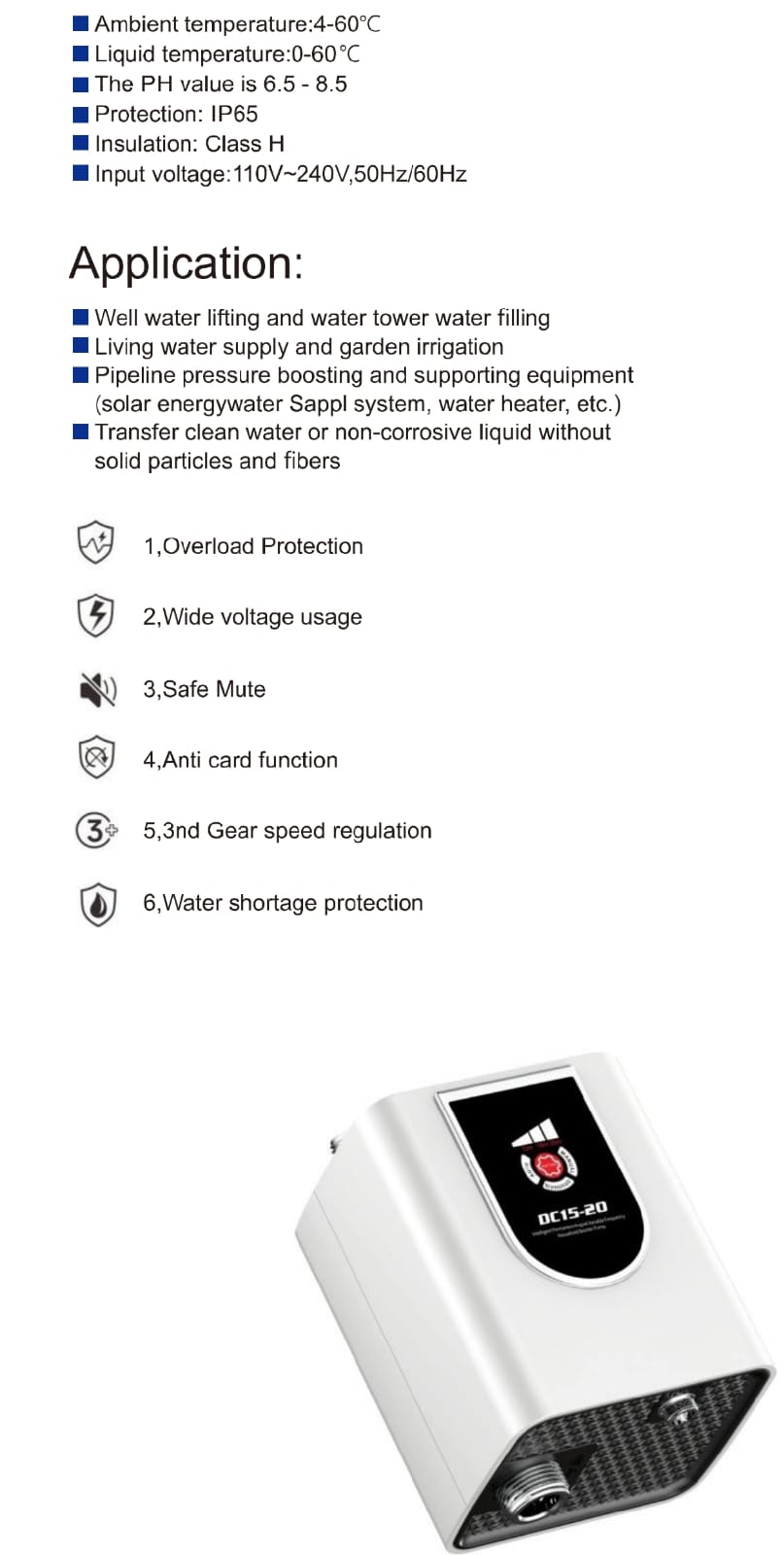24BLDC Booster Pump 90watts with Adapter DC15-20D