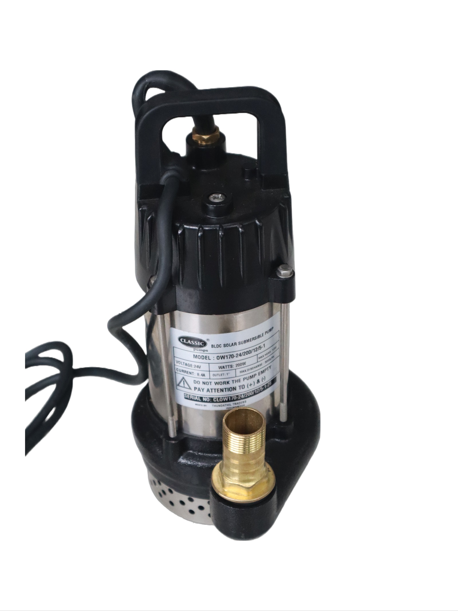 - 24V 350 watts Delivery size: 1.5″ Max head : 12 Meters Max Discharge: 5000 LPH Minimum solar panel : 24Volt , 540 watts