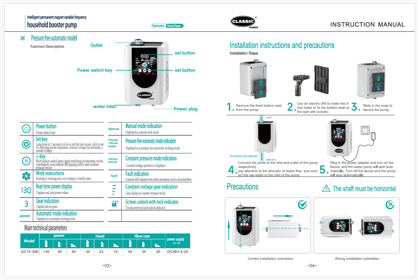 CLASSIC DCP15-30 36V Intelligent Booster pump 2.8 Bar | 0.5A | Limited Stock