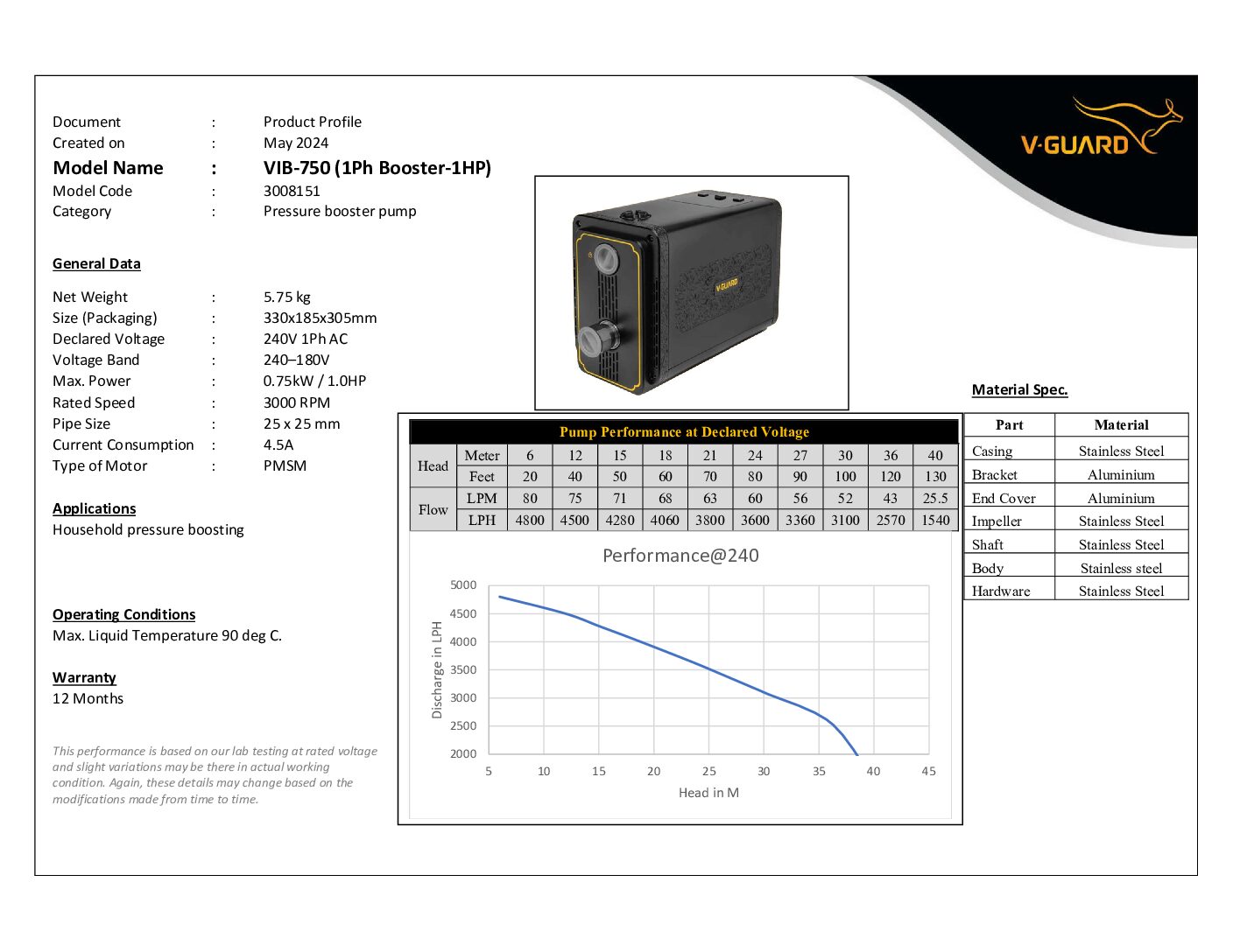 Model Name : VIB-750 (1Ph Booster-1HP)