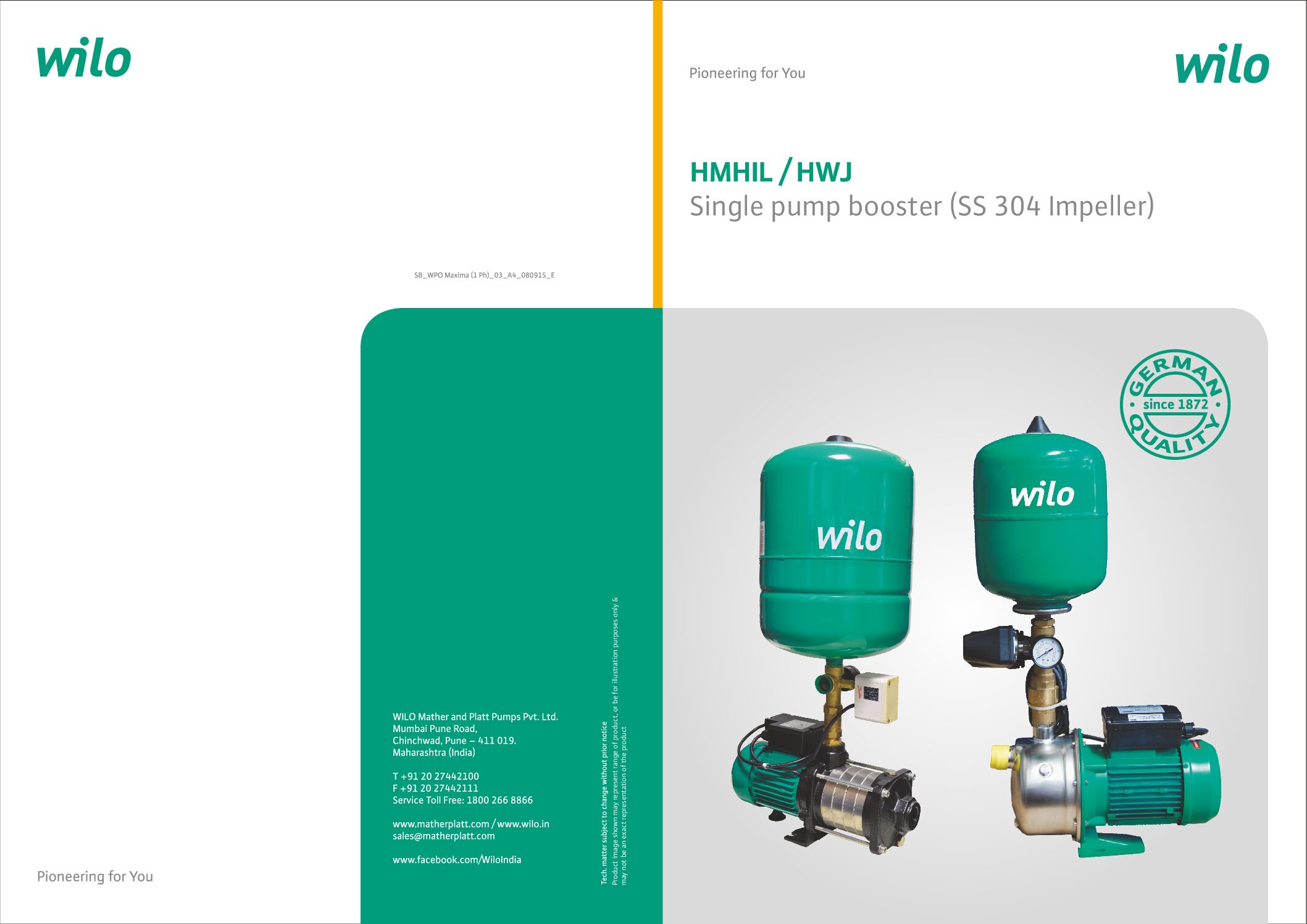 Wilo 0.75HP Pressure Booster with 24L tank HMHIL304-EM-24